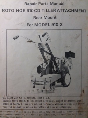 Roto Hoe 910 Walk Behind Tractor Rear Mount Tiller Implement 910 Cd Parts Manual Ebay